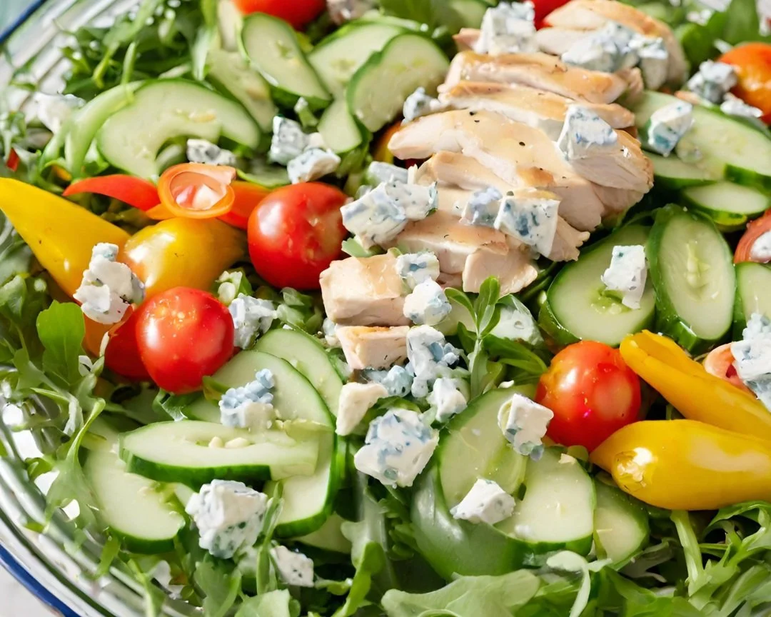 Salads are the perfect meal for a light and healthy lunch or dinner. They are easy to prepare and can be filled with a variety of nutritious ingredients. This post will guide you through a delightful recipe for an arugula salad with cucumbers, hothouse tomatoes, bell peppers, chicken, and blue cheese. This salad is a symphony of flavors with the peppery arugula, tangy blue cheese, and succulent chicken being the main stars.